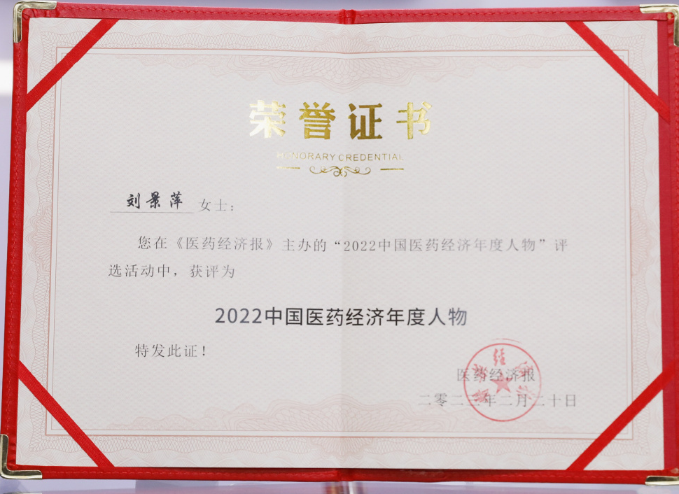AGGAME药业集团董事长刘景萍当选“2022中国医药经济年度人物”